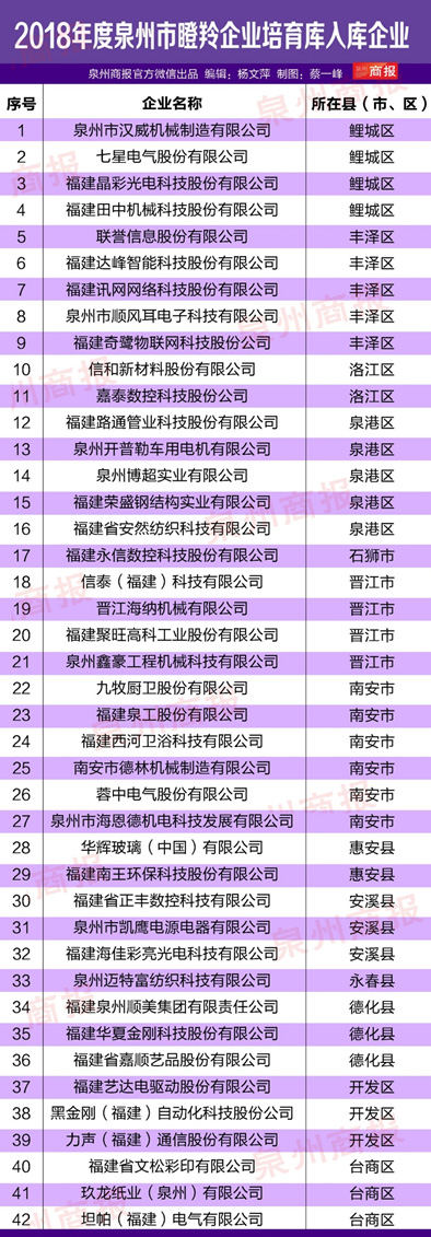 2018年度泉州市瞪羚企業(yè)培育庫入庫企業(yè)